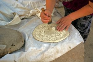 Let the people cook many varieties of cooked foods ending with liquid vegetable preparations, and beginning with sweet rice, fried and baked cakes, large, round cakes made from rice flour, and all that is obtained by milking the cows.